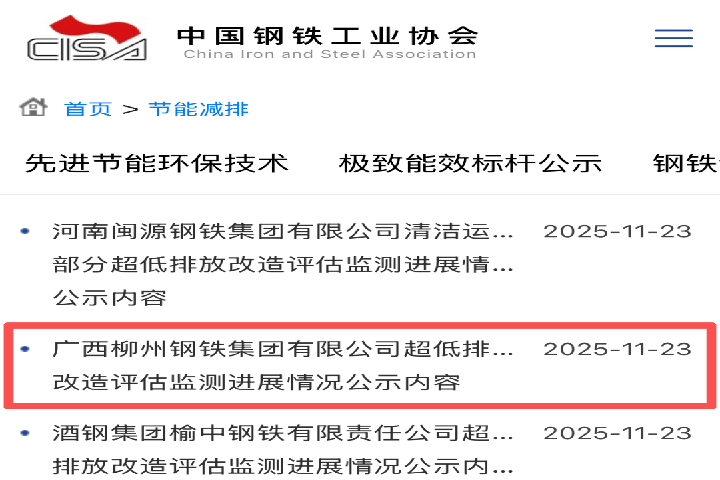 正式公示!柳鋼集團超低排放改造實現(xiàn)關(guān)鍵跨越